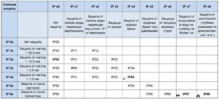 Le degré de protection est indiqué sur le boîtier avec des lettres latines IP et des chiffres. Les variétés les plus courantes :