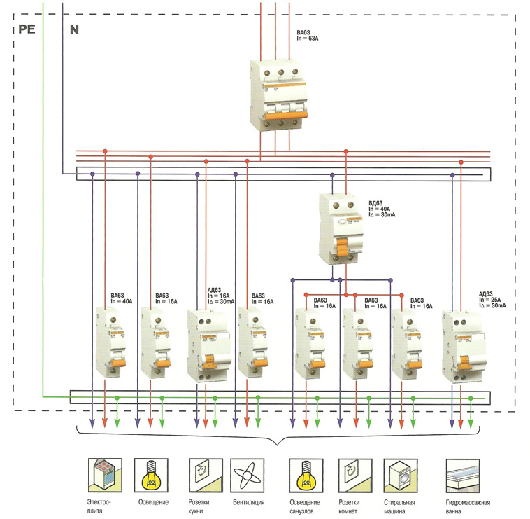 - Appareils automatiques - appareils conçus pour la déconnexion automatique du circuit électrique en cas de surcharge (surtensions, surtensions). Le nombre d'appareils et la puissance sont sélectionnés selon les besoins.