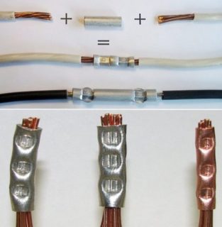 Vous aurez également besoin de manchons spéciaux en cuivre, en aluminium ou en laiton. Ils sont sélectionnés pour le matériau approprié des âmes de câble. Si vous devez connecter plusieurs fils torsadés devant le bornier, des cosses sont utilisées.