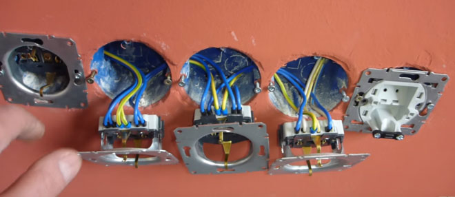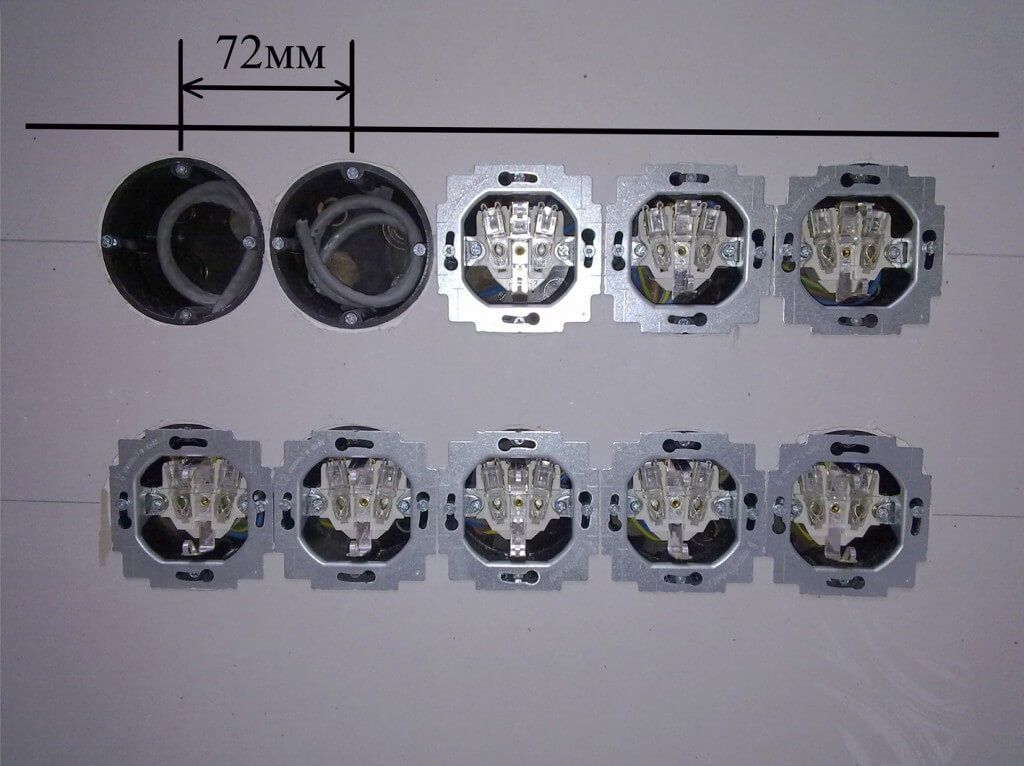De plus, des trous sont faits pour les prises de courant. Les manchons sont montés sur albâtre ou plâtre.Pour éviter que la solution ne durcisse rapidement, de la colle PVA peut être ajoutée à l'eau. La boîte standard a une profondeur de 45 mm. Tout ce dont vous avez besoin peut facilement être rangé dans la boîte à prises.