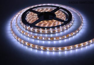 La base de la bande LED est une bande flexible sur laquelle se trouvent des diodes lumineuses, connectées les unes aux autres par un circuit qui longe des chemins électriques. Chaque ruban est équipé de marqueurs pour les coupes, ainsi que de coutures de petite taille pour connecter les fils. Le verso de la structure est une bande adhésive qui vous permet de fixer l'appareil sur n'importe quelle surface.