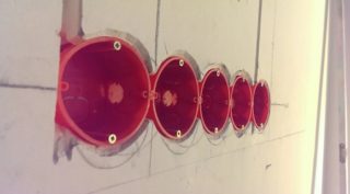 Dans ce cas, le fil est posé à l'avance. Là où l'appareil à monter sera placé, une certaine quantité de fil est laissée. Lors de l'achat des produits eux-mêmes, vous devez choisir de telle sorte que leurs oreilles, une fois ouvertes, ne sortent pas du cercle. Le marquage des trous, comme dans le cas d'une douille pour murs en bois, se fait de la même manière que pour le béton. Les trous sont percés avec une perceuse à couronne conçue pour le travail du bois. Lors de l'installation de produits en plastique dans des cloisons sèches, les fils sont insérés dans la prise avant son installation.