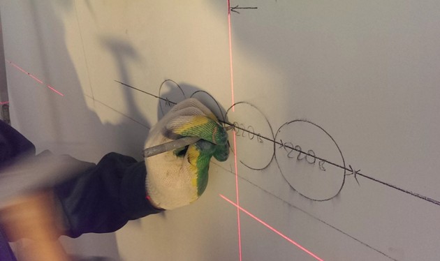 Avant de percer, il est nécessaire de marquer les rainures. La distance standard entre les centres des puits est de 7,1 mm. Ensuite, vous devez prendre une perceuse et faire des trous aux points indiquant les centres. Ensuite, le nombre maximum de rainures doit être percé le long du diamètre du cercle. Vous pouvez utiliser une couronne.