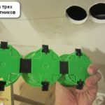 L'installation de plusieurs prises de courant dans une unité présente certaines particularités. L'installation d'un groupe de boîtiers s'effectue selon le même schéma. La plaque de plâtre est prétraitée avec du mastic, les marquages sont appliqués sur le mur. La distance entre les centres des boîtiers de prises doit être de 71 mm sans erreur. Ensuite, le nombre de trous requis est percé. La cloison entre eux est enlevée avec un couteau ou une scie. Le câble n'est acheminé que par la première fenêtre.