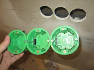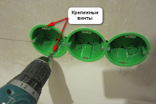 L'essentiel est que la taille du trou ne soit pas supérieure au diamètre extérieur de la douille. Si tout est fait correctement, le bloc devrait s'enclencher sans problème. La dernière étape consiste à serrer les vis de fixation. Cela doit être fait progressivement avec soin afin de ne pas endommager les cloisons sèches.