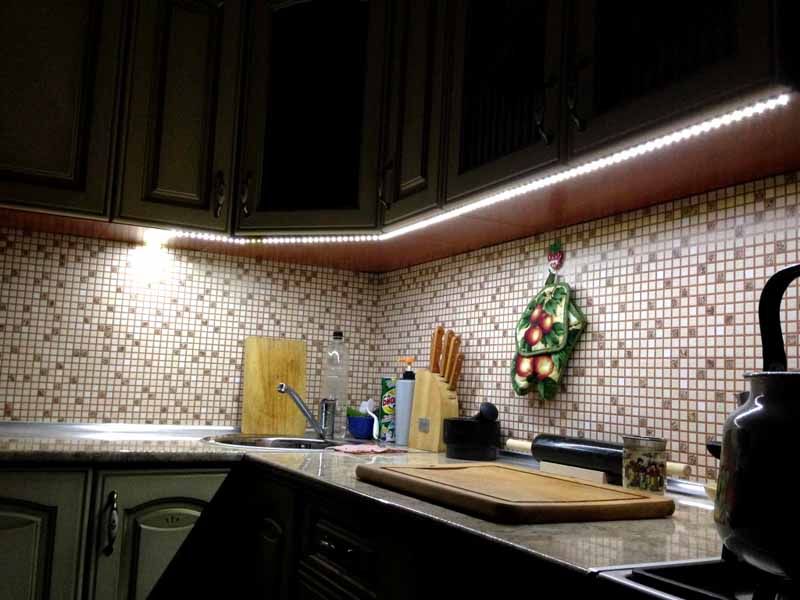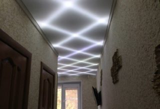 Habituellement, à ces fins, des bandes avec des éléments de luminosité accrue sont utilisées, caractérisées par une lueur blanche chaude. L'utilisation de dispositifs d'éclairage de faible puissance, même s'ils sont uniformément répartis sur tout le périmètre, nécessitera l'installation d'une lampe supplémentaire.