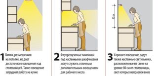 La qualité de l'éclairage affecte la santé humaine : humeur, concentration, fatigue, système nerveux et vision. Pour cette raison, même au stade de la création d'un projet, vous devez vous occuper de l'éclairage de la zone de travail dans la cuisine et dans tout l'appartement.