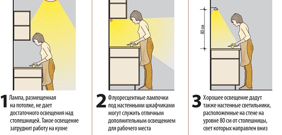 Pourquoi avez-vous besoin d'éclairage dans la cuisine au-dessus de la surface de travail