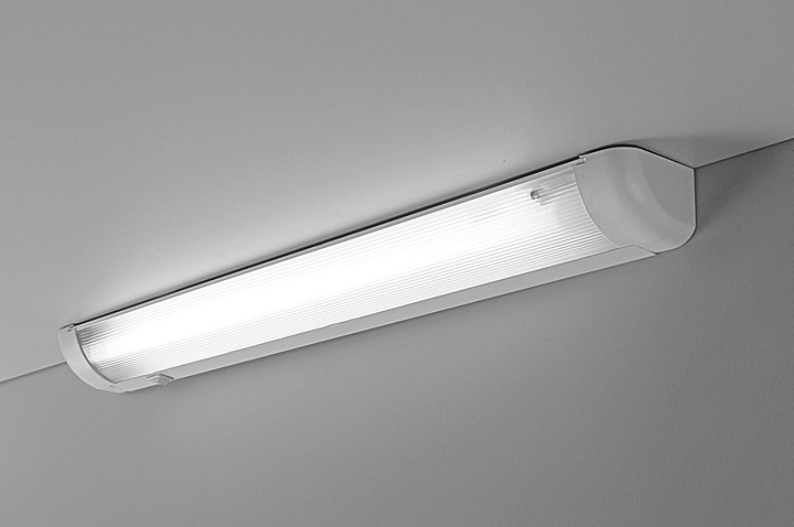 - Les lampes fluorescentes sont également très demandées en raison de leur facilité d'installation, de leur prix raisonnable, de leur faible consommation d'énergie et de leur large assortiment en magasin. Il convient également de mentionner séparément la longue durée de vie avec une installation correcte et une manipulation soigneuse. Il existe deux types d'organisation de ces éclairages : l'installation de lampes fluorescentes ordinaires et l'installation de dispositifs d'éclairage spécialisés. En termes de coût, la première option est plus acceptable. Cependant, cette méthode présente également un inconvénient important: pour masquer les dispositifs d'éclairage, des bandes spéciales doivent être prévues dans les armoires.