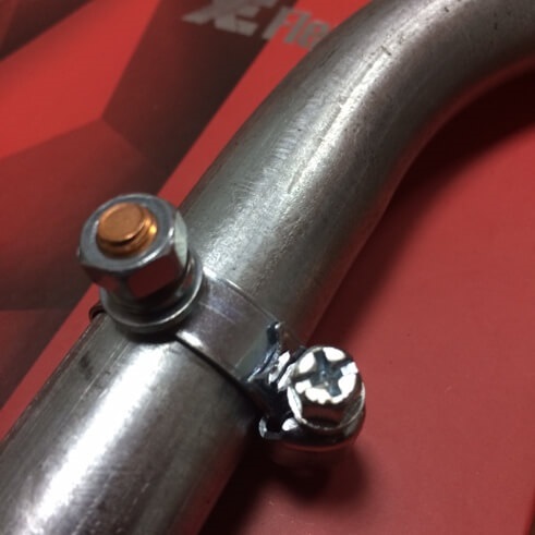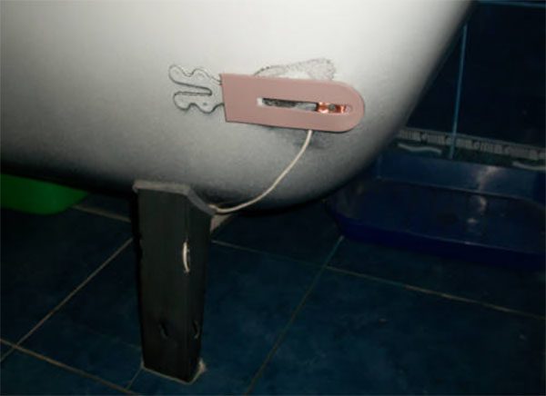 Les baignoires à l'ancienne n'ont pas de plots de contact pour le fil de terre. Pour faire la connexion, vous devez percer un trou dans la jambe. Fixez ensuite le conducteur avec une connexion boulonnée.