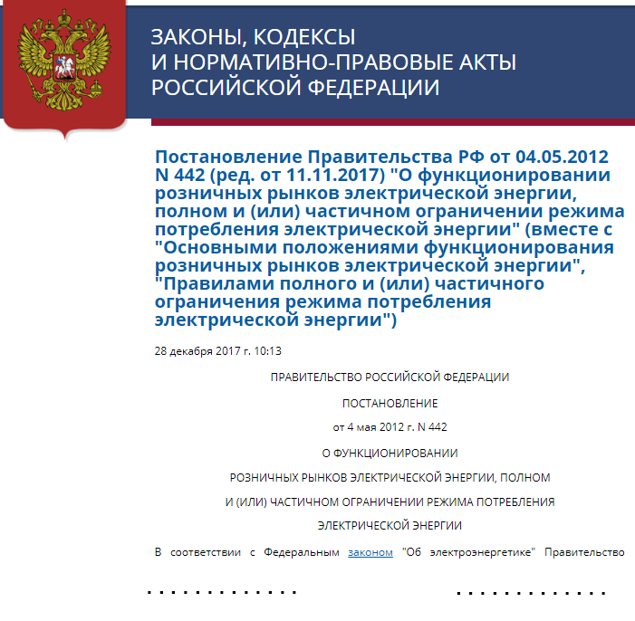 - Décret du gouvernement de la Fédération de Russie n° 442 du 4 mai 2012 - détermine le niveau de précision des instruments, l'indicateur requis est de 2,0 et plus;