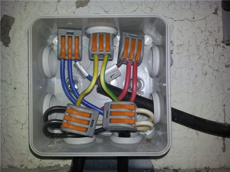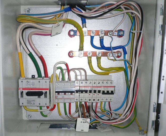 Le câblage à partir d'un réseau triphasé est effectué uniquement avec un câble à cinq conducteurs.Trois conducteurs seront en phase, un pour le neutre et un pour la terre de protection. Le codage couleur est appliqué conformément aux exigences réglementaires. Pour la protection, une tresse jaune-vert est utilisée, pour zéro - bleu ou bleu clair, pour une phase - de la liste des teintes autorisées.