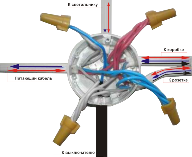 Un fil de cuivre avec un ou deux noyaux est tiré du boîtier de commutation vers le commutateur. Le nombre de cœurs dépend du nombre de clés sur l'appareil. La phase doit rompre, pas zéro. En cours de travail, il est permis d'utiliser un conducteur blanc pour l'alimentation, en notant le schéma.
