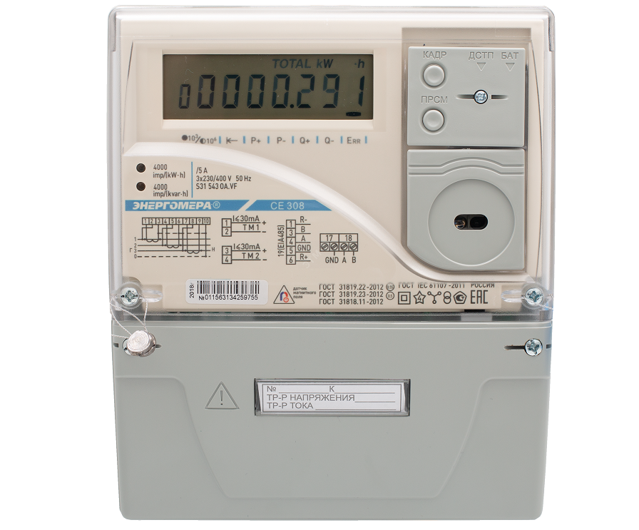 - Energomètre CE300 R31145-J - un appareil pour un réseau triphasé. Le modèle à tarif unique dispose d'un écran LCD, d'un indicateur lumineux. Il peut être connecté au réseau via un transformateur. Montable sur rail DIN. Le compteur est résistant aux basses températures, il peut donc être installé dans une pièce non chauffée. Il existe une protection contre le vol d'électricité.
