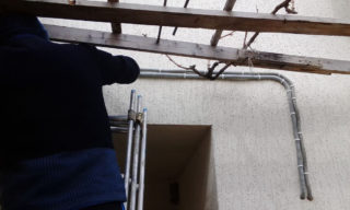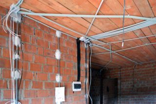 - des fils cachés sont montés sous le sol, dans les vides des dalles de béton, masqués avec du plâtre ou un manchon métallique;
