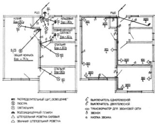 - Faire un plan électrique. Il est réalisé en 2 exemplaires, dans le premier il devrait y avoir un plan d'interrupteurs et de points d'éclairage, dans le second - des prises.
