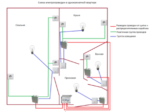 Lors de l'installation des lignes électriques, elles sont guidées par un schéma typique d'un appartement d'une et deux pièces.