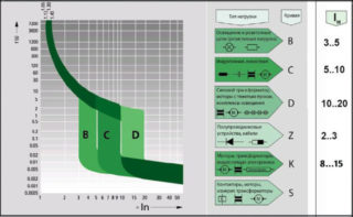 Pour comprendre la différence entre les machines automatiques C et B, il faut noter : la capacité à "tenir" les surcharges pour les appareils de type C est encore plus élevée que celle des deux premières catégories, ce qui permet de les installer dans une alimentation domestique la grille. Pour éteindre l'électro-aimant de tels appareils, il faudra un courant 5 fois supérieur à la valeur nominale. Pour un fonctionnement fiable de la protection thermique, un excès de cinq fois est nécessaire en 1,5 seconde.