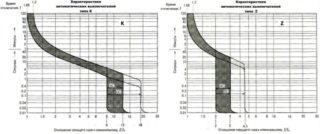 Les appareils avec la lettre K se caractérisent par un étalement important des courants de fonctionnement du déclenchement e/m (relais). Pour le courant alternatif, ce chiffre est 12 fois supérieur au nominal, et pour les lignes à puissance constante, il atteint 18.