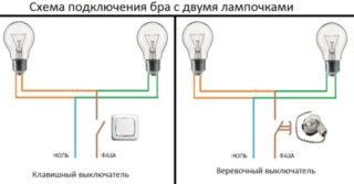 Selon la méthode de connexion des interrupteurs de la lampe, on distingue les éléments suivants: