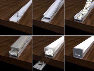 Un profil de haute qualité assurera une protection et une longue durée de vie pour la bande LED. Il existe plusieurs types de montage sur boîtier :