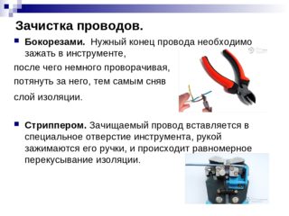 - À l'aide d'un outil spécial, d'un couteau ou d'un scalpel, retirez la couche isolante des fils à connecter.