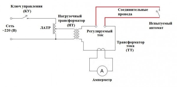 Le mode de chargement des disjoncteurs implique la création artificielle d'une boucle fermée avec possibilité de réglage progressif de l'indicateur de courant électrique. Ce principe est utilisé par tout chargeur automatique disponible dans le commerce. Il existe des dispositifs pour différents courants nominaux.