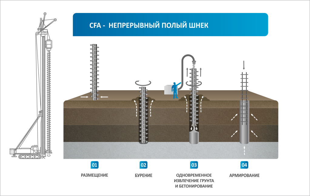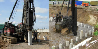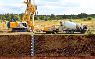 Les types percés représentent l'immersion du tubage, suivie du bétonnage et de l'installation des armatures. Les variétés à vis sont équipées de lames pour visser séquentiellement la tige dans la terre.