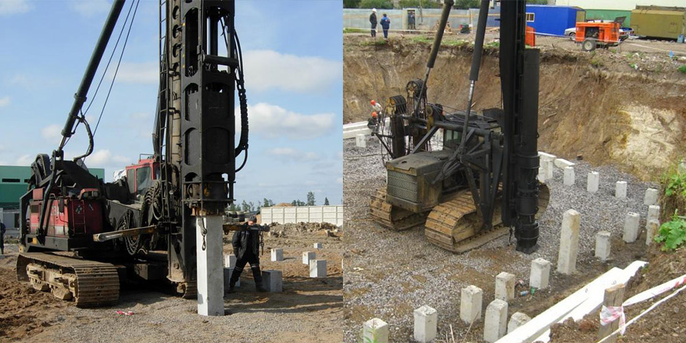 Ces crémaillères sont obstruées par des unités de percussion pneumatiques. Les pieux en béton sont des tuyaux en acier en forme de cône qui sont remplis de mélange de béton à l'aide de pompes spéciales. Ils sont utilisés en milieu urbain lorsqu'il y a une forte surpopulation des bâtiments voisins.L'équipement lourd n'est pas utilisé dans de telles conditions en raison de la complexité de la situation.