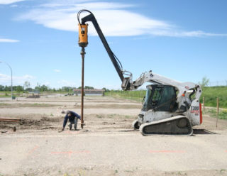 Les dimensions du dispositif de frappe pneumatique lui permettent d'être utilisé à proximité des fondations existantes d'autres bâtiments. Des supports à béton sont placés sur des sols sableux, des sols humides, utilisés pour construire des fondations au fond des réservoirs.