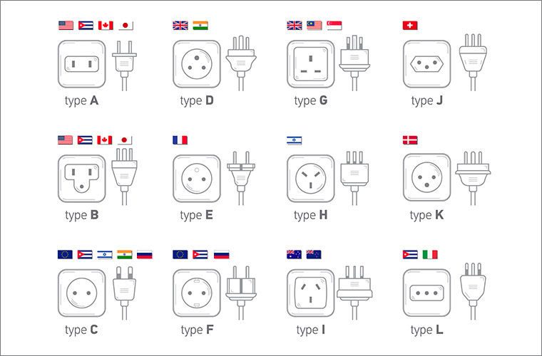 La variété des types d'équipements nécessite un nombre approprié de types de prises de terre. Ceci est particulièrement frappant pour les voyageurs - il existe douze normes pour la production de tels appareils. Par exemple, les appareils dotés de prises en provenance de Russie ne pourront pas être utilisés en Israël, en Angleterre, en Suisse et dans de nombreux autres pays.