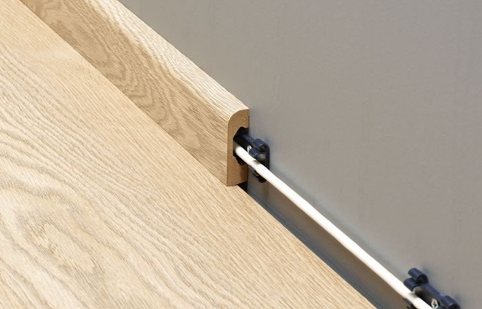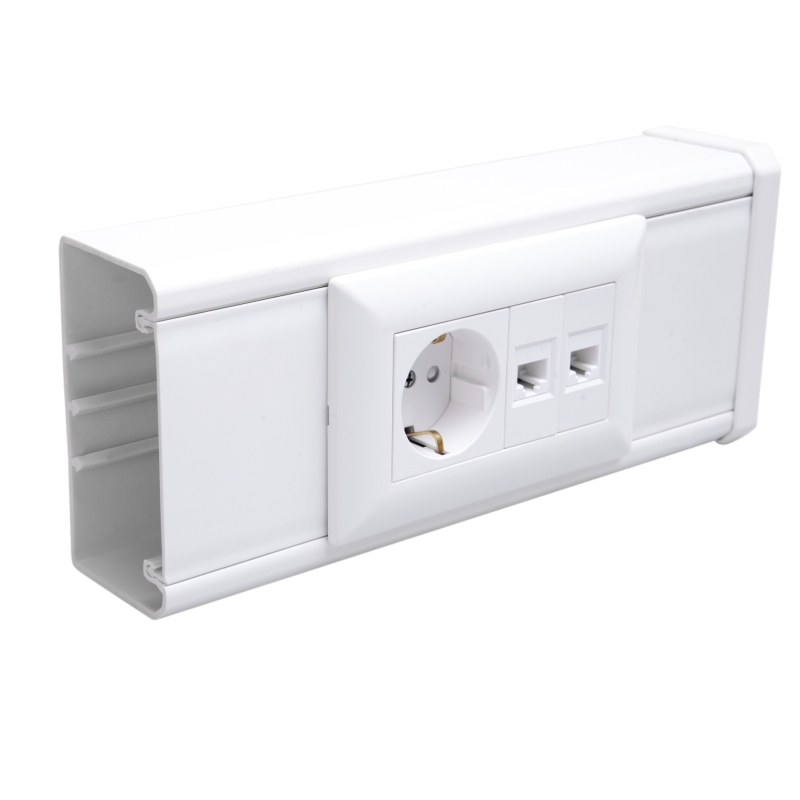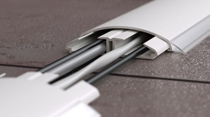 De tels chemins de câbles au sol comprennent plusieurs chambres dans lesquelles les lignes d'alimentation et de données peuvent être placées séparément les unes des autres. Comme son nom l'indique, il est recommandé de placer de tels appareils sous la plinthe et non le long des murs.