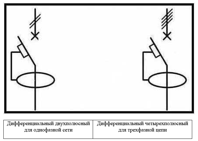 Les RCD, ainsi que d'autres éléments de la documentation du projet, sont le plus souvent effectués de manière conditionnelle, ce qui rend difficile le déchiffrement du principe de fonctionnement de l'ensemble du circuit et des éléments individuels. L'image du dispositif de protection peut ressembler à un interrupteur classique. Mais sur un circuit non linéaire, cela représente deux commutateurs parallèles. Sur une seule ligne, les éléments, les fils et les pôles sont représentés symboliquement.