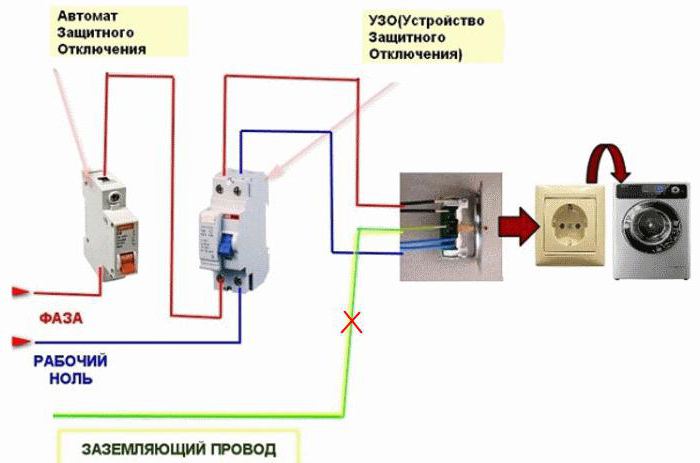 - Le zéro et la masse sont connectés après le dispositif de protection. Si le schéma est mal interprété, le neutre peut être connecté à une partie ouverte de l'installation électrique ou à un conducteur de protection neutre.