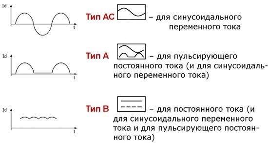 Les Difautomats se distinguent par types, en fonction du courant de fuite et sont marqués des indices de lettres suivants :