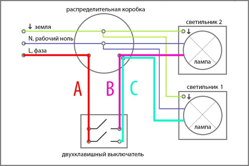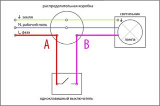 Pour un certain nombre de fabricants, cette branche n'est pas du tout indiquée. S'il est au-dessus, un fil en est dévié vers le lustre ou la boîte de jonction.