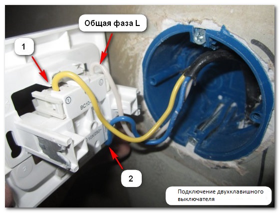 - dans le cas d'une version à une clé, le commutateur a L et L1 - cela signifie qu'un seul conducteur sortant est connecté à la sortie ;