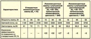 - Indice de rendu des couleurs. Dépend de la version de la lampe. Dans les appareils standard, il est de 50 à 70 %, dans les lampes avec un rendu des couleurs accru, il est de 97 %.