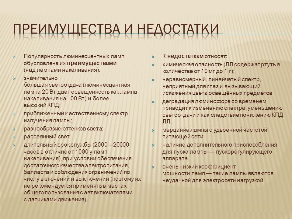 Les lampes fluorescentes ont plus que des caractéristiques techniques. Comme tout produit électrique, ils ont des caractéristiques électriques et, en tant que dispositif d'éclairage, des paramètres d'éclairage.