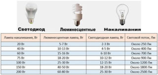 - Puissance nominale. Selon cet indicateur, on distingue les appareils de faible puissance (jusqu'à 18 W), de moyenne puissance (jusqu'à 58 W) et puissants (à partir de 58 W). On trouve également en vente des ampoules à haute intensité d'une puissance de 150 W, mais elles ne sont pratiquement pas utilisées en raison de leur faible efficacité.