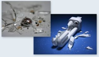 - La composition comprend du phosphore et du mercure. Ces substances ne sont pas dangereuses tant que la lampe est en bon état de fonctionnement et que son corps est intact. Mais si vous le cassez, la concentration de mercure dans la pièce augmente d'au moins 20 fois, ce qui pose un grave danger pour la santé.