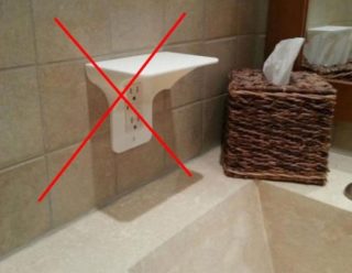 Jusqu'à récemment (1996), l'installation de prises électriques était interdite dans les pièces très humides. Cela était dû au grand nombre de lignes conductrices dans les locaux : tuyaux métalliques, sèche-serviettes, machines à laver à corps métallique.
