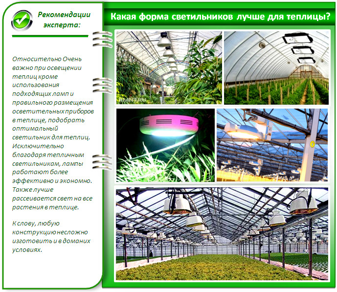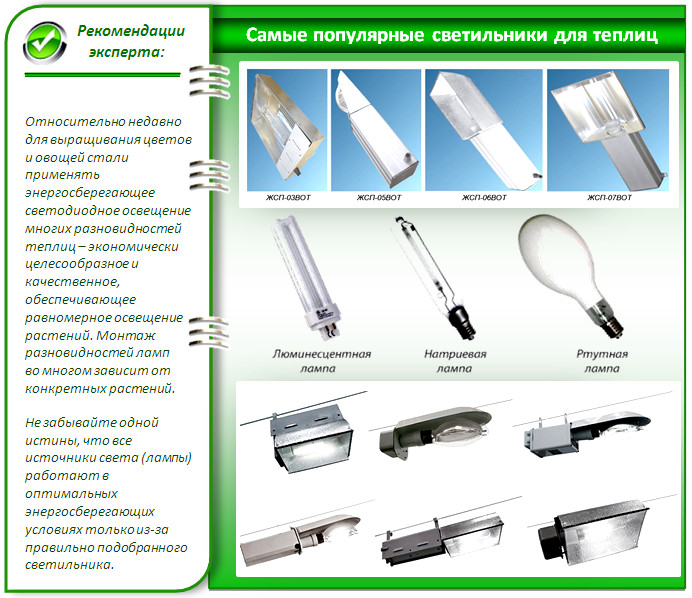 - fluorescent - la meilleure option pour les serres, ils interagissent bien avec les lampes UV;