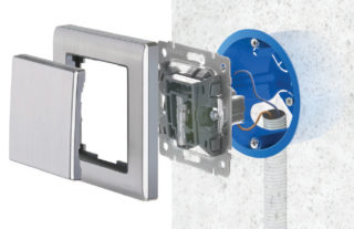 Avec une installation ouverte du câblage électrique, il est possible de se passer des opérations fastidieuses de préparation de flashs et d'une niche spéciale dans le mur. Dans ce cas, l'interrupteur est fixé soit directement sur le mur, si son matériau est suffisamment dense et dur, soit sur un revêtement spécial en plastique ou en bois, appelé douille.