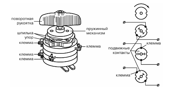 - pour commuter les circuits d'enroulement et les modes de fonctionnement des moteurs électriques, ainsi que pour contrôler l'éclairage à partir de plusieurs points à la fois;