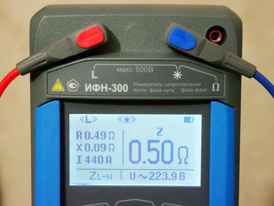 - La résistance phase-zéro est calculée selon la formule déjà connue Zp = U / I, où : Zp est la valeur du paramètre requis en Ohms, U est la tension de test mesurée en Volts, I est la valeur du courant de mesure en Ampères .