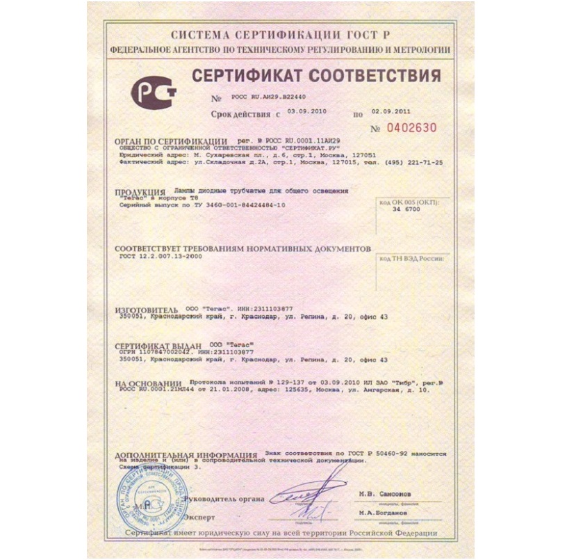 Lorsque tous les paramètres sont normaux, il est recommandé de remplacer la lampe LED par un analogue de haute qualité d'une marque bien connue.