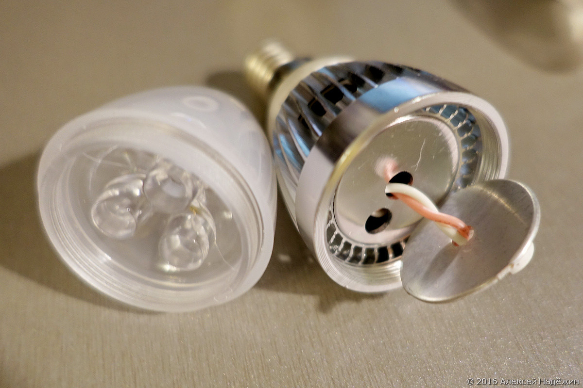 - Remplacez l'une des LED du luminaire par une lampe à incandescence. Elle prendra du courant libre. Cette méthode ne convient qu'aux appareils à plusieurs cornes. L'inconvénient de la méthode est que l'effet d'économie d'énergie de l'éclairage est réduit.