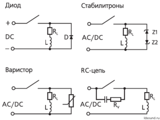 - Snabber. Le circuit de dérivation RC est conçu pour dissiper l'énergie stockée dans l'inductance au moment de la résistance active du réseau.