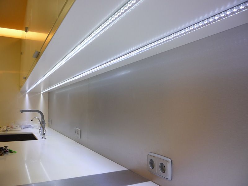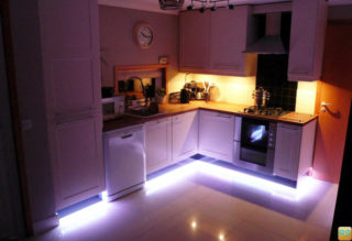 - L'installation est effectuée dans une plinthe spéciale. Il est préférable de diriger le flux lumineux le long de la surface de travail.